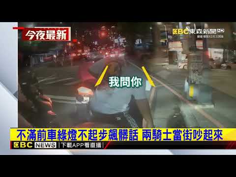 綠燈亮了,一名騎士遲遲沒有往前騎,後方騎士猛按喇叭,騎過去之後還飆罵髒話。被罵的騎士追上去,雙方當街吵了起來。