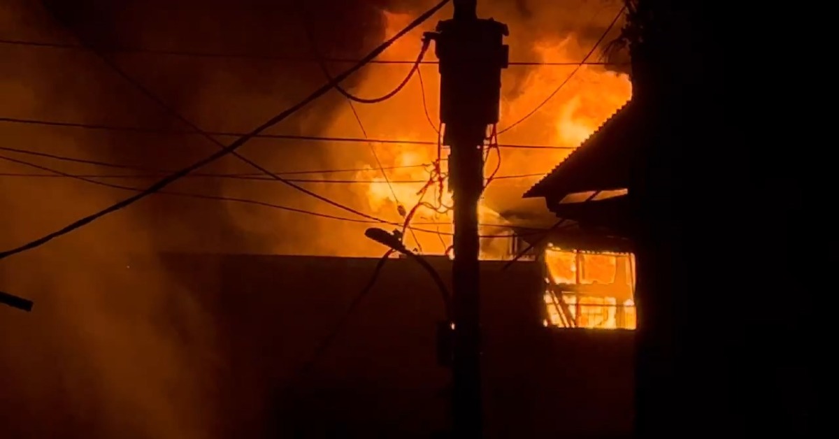 桃園南門市場今(5)日晚間21時35分左右發生火災,現場濃煙狂竄,更有一處電線發生短路,爆閃畫面曝光。