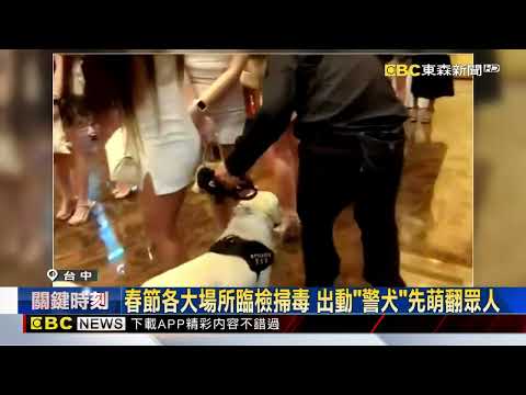 春節前夕,台中市警方前往酒店、KTV等地方臨檢,其中最吸睛的,是兩隻又萌又殺的警犬也跟著緝毒,穿梭在身材姣好的小姐們當中,讓她們也忍不住喊著好可愛。