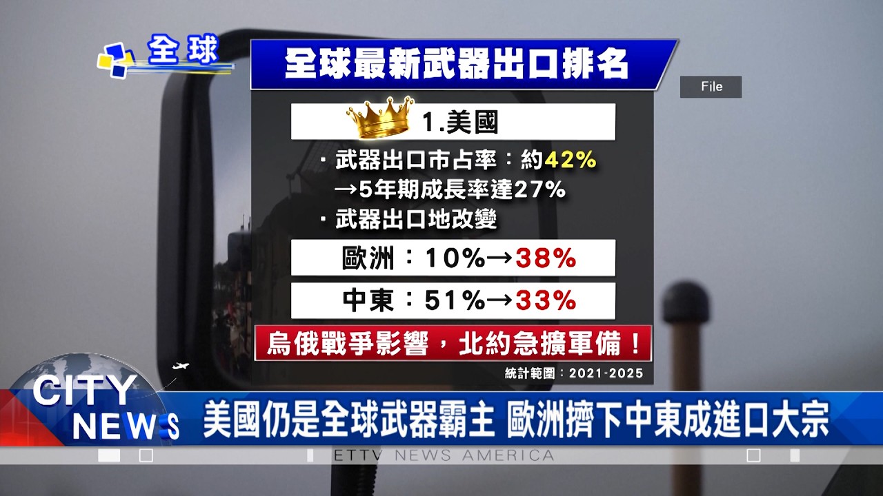 美國仍是全球武器霸主 歐洲擠下中東成進口大宗