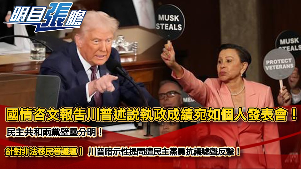 國情咨文報告川普述說執政成績宛如個人發表會!民主共和兩黨壁壘分明!針對非法移民等議題,川普暗示性提問遭民主黨員抗議噓聲反擊!【明目張膽】20260227 (上)