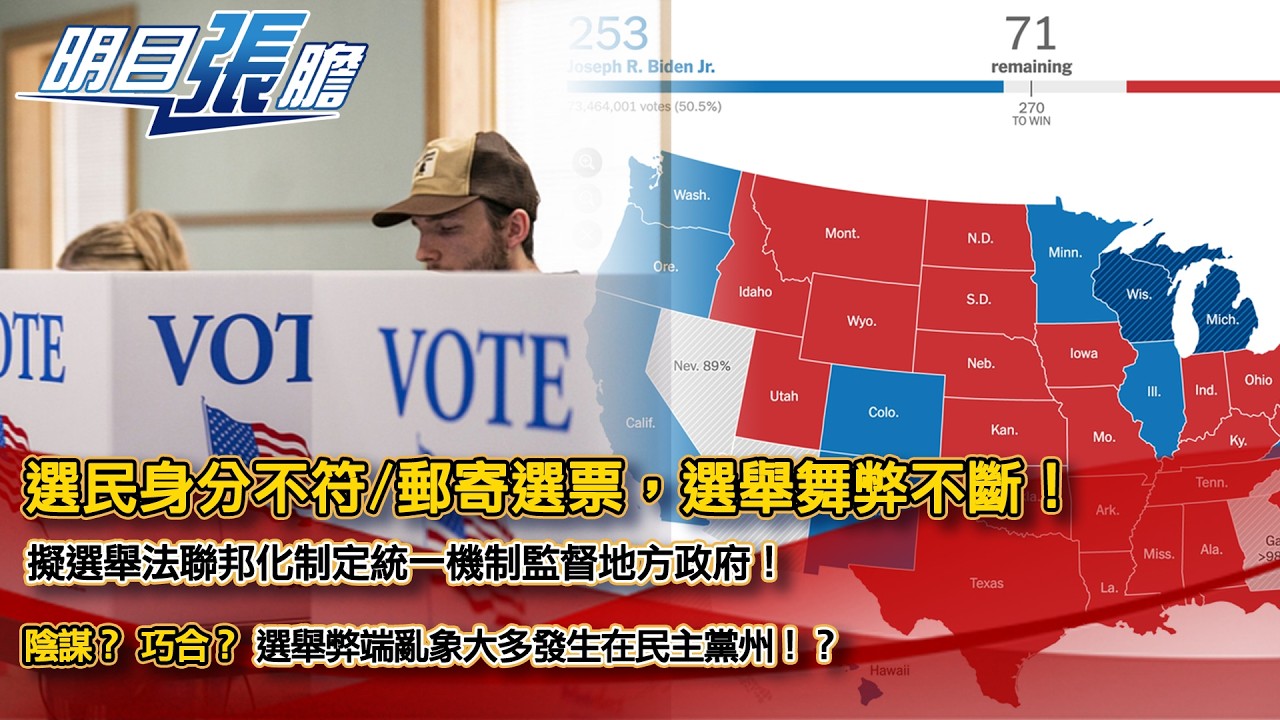 陰謀?巧合?選舉弊端亂象大多發生在民主黨州!?選民身分不符/郵寄選票,選舉舞弊不斷!擬選舉法聯邦化制定統一機制監督地方政府!【明目張膽】20260220 (下)