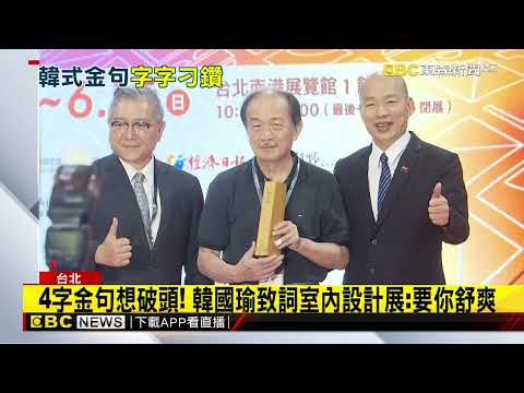 立法院長韓國瑜現身室內設計博覽會,現場都期待他金句連發,韓院長先舉例,前副總統連戰曾為北京烤鴨題字「日理萬鴨」,至於針灸,他想出無孔不入的的點子,那對於室內設計的四字金句到底是什麼?韓院長講完後,笑說還不夠貼切。