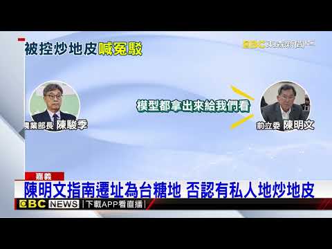 而陳明文則反駁說,南遷選址是台糖地,沒有私人地。前立委陳明文:「南遷的地點是在阿里山公路旁邊,那個地點方圓5公里都是台糖土地,我沒有土地在那裡。」