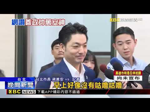 台北市長蔣萬安vs.記者:「持續掌握整個颱風的動態,密切關注它的影響,(早上好像沒有咕嚕咕嚕,那是不是有被網友稱讚一下),謝謝。」