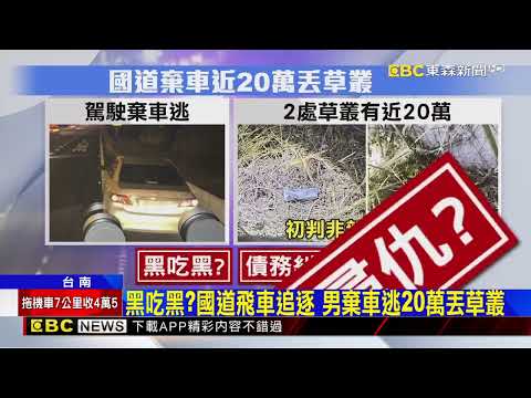 國道一號南下永康段驚傳飛車追逐,有民眾目擊,被追的前車駕駛急停路肩跳下邊坡,另一方則有5人持球棒追逐。警方到場時,路肩車輛空無一人,也沒發現可疑人士,卻在兩處草叢發現2疊千元鈔票,初估近20萬。會不會是詐團黑吃黑,還是債務糾紛,得等警方通知車主到案才能釐清。